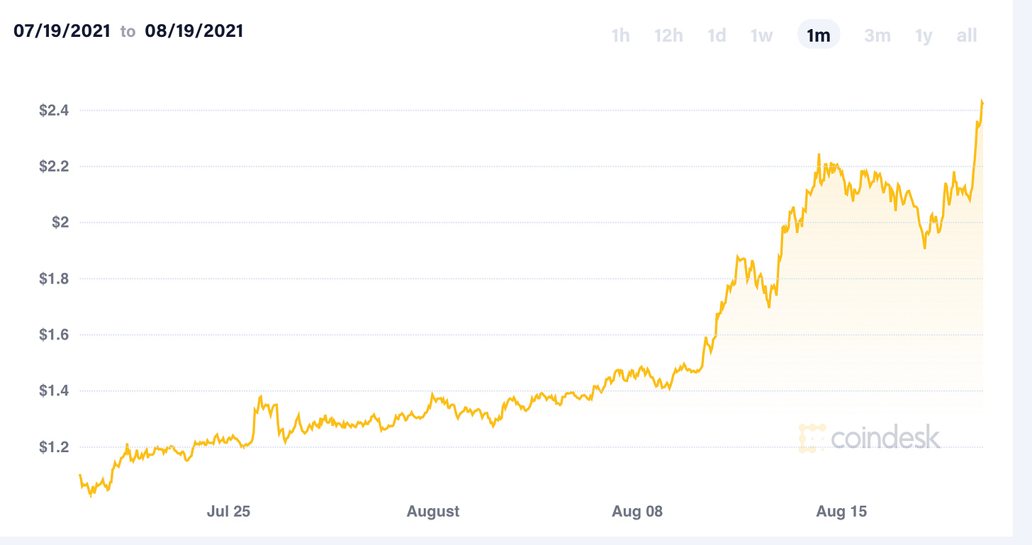Bitcoin and Ethereum prices have surged in the past week with Ethereum rival Cardano (ADA), a public blockchain platform, making a massive move higher to the $2.40 range (ADA makes up 5% of my crypto portfolio currently). I think is one of the alts you need exposure to. Wish I bought more.