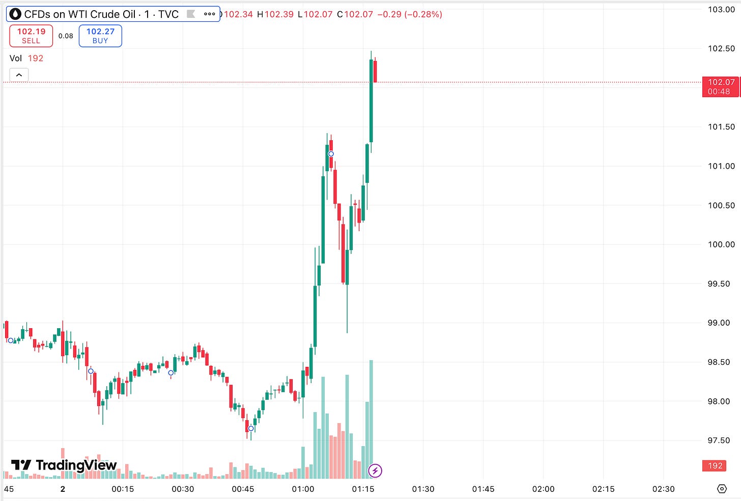 But he also said that Iran would be hit hard in the next 2-3 weeks and sent back to the stone age. Oil ripped during the speech with Larry Fink of BlackRock saying that oil at $150 would trigger a global recession. S&P 500 futures erased over $550 billion in market cap during the speech (Kobeissi Letter).