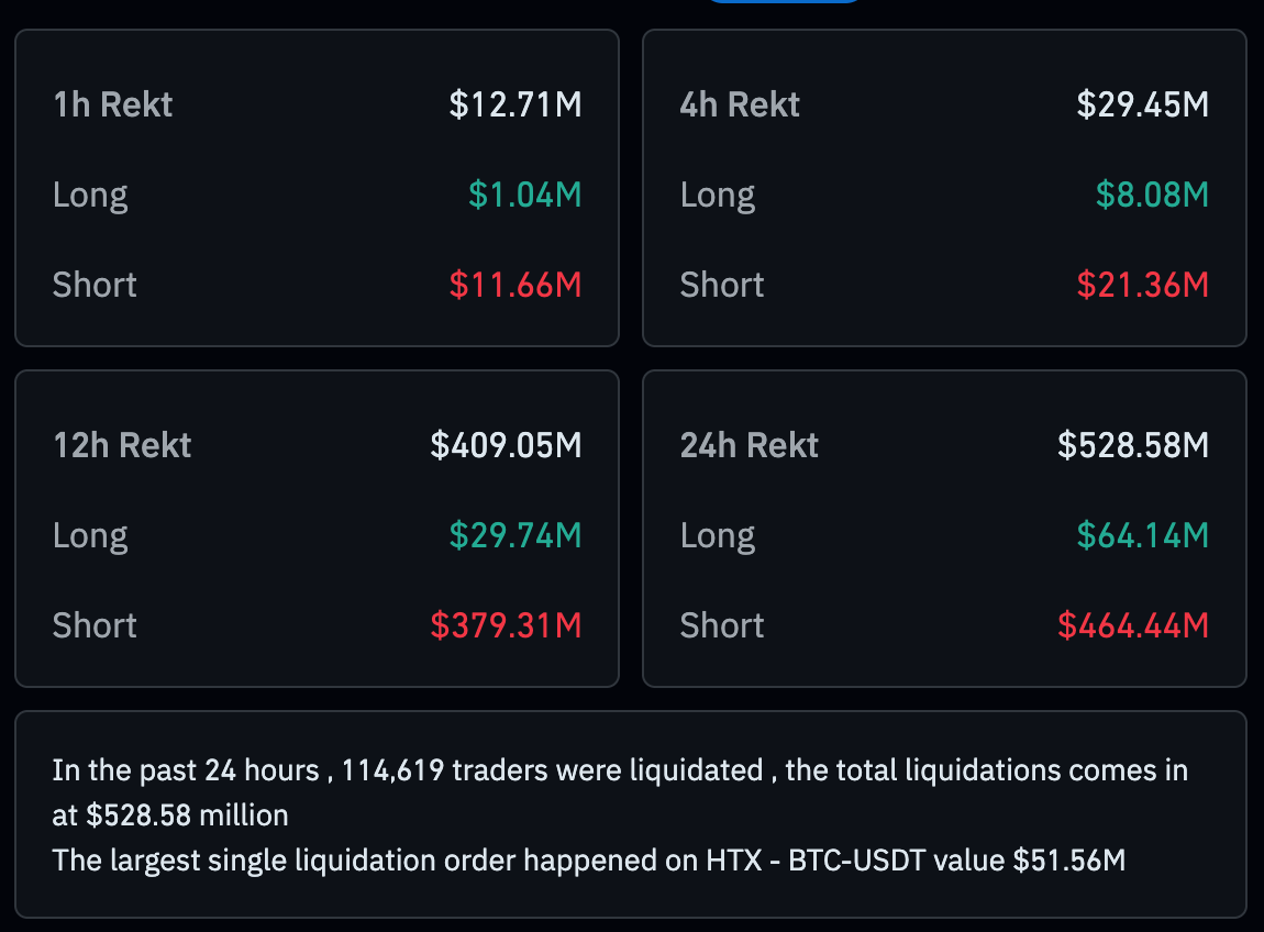 Short sellers got murked to put it lightly — as of 11:12pm ET last night, $464.44M shorts had been liquidated. Another reminder to not use leverage kids.