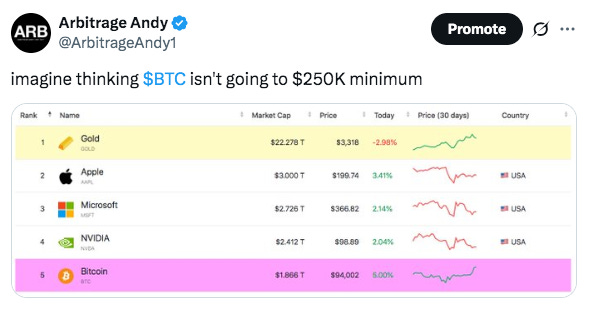 Bitcoin, the king, is now the world’s 5th largest asset by market cap surpassing GOOG 0.00%↑.