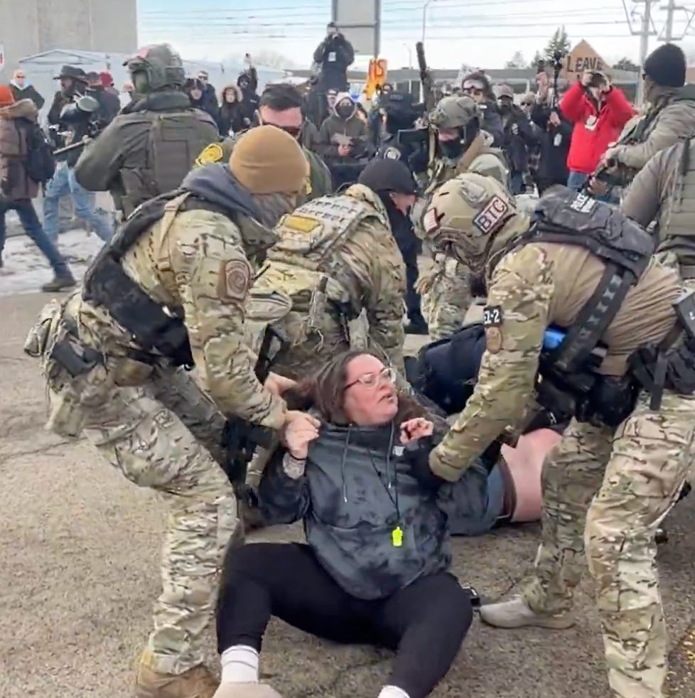 Pretty insane passage right? This was screamed by a woman protesting outside the Whipple Federal Building in Minneapolis this week after the ICE shooting that left a woman dead.