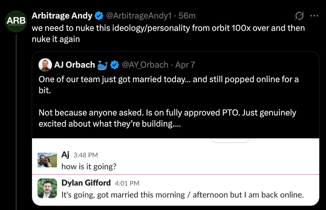 In fact it’s the greatest antidote to escaping a company and world where the below exchange that went viral on X is normalized. Can you imagine the levels of soy? The levels of sheer corporate tele tubby slop?